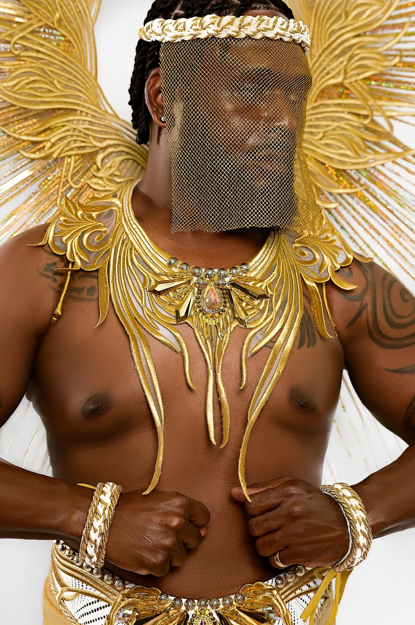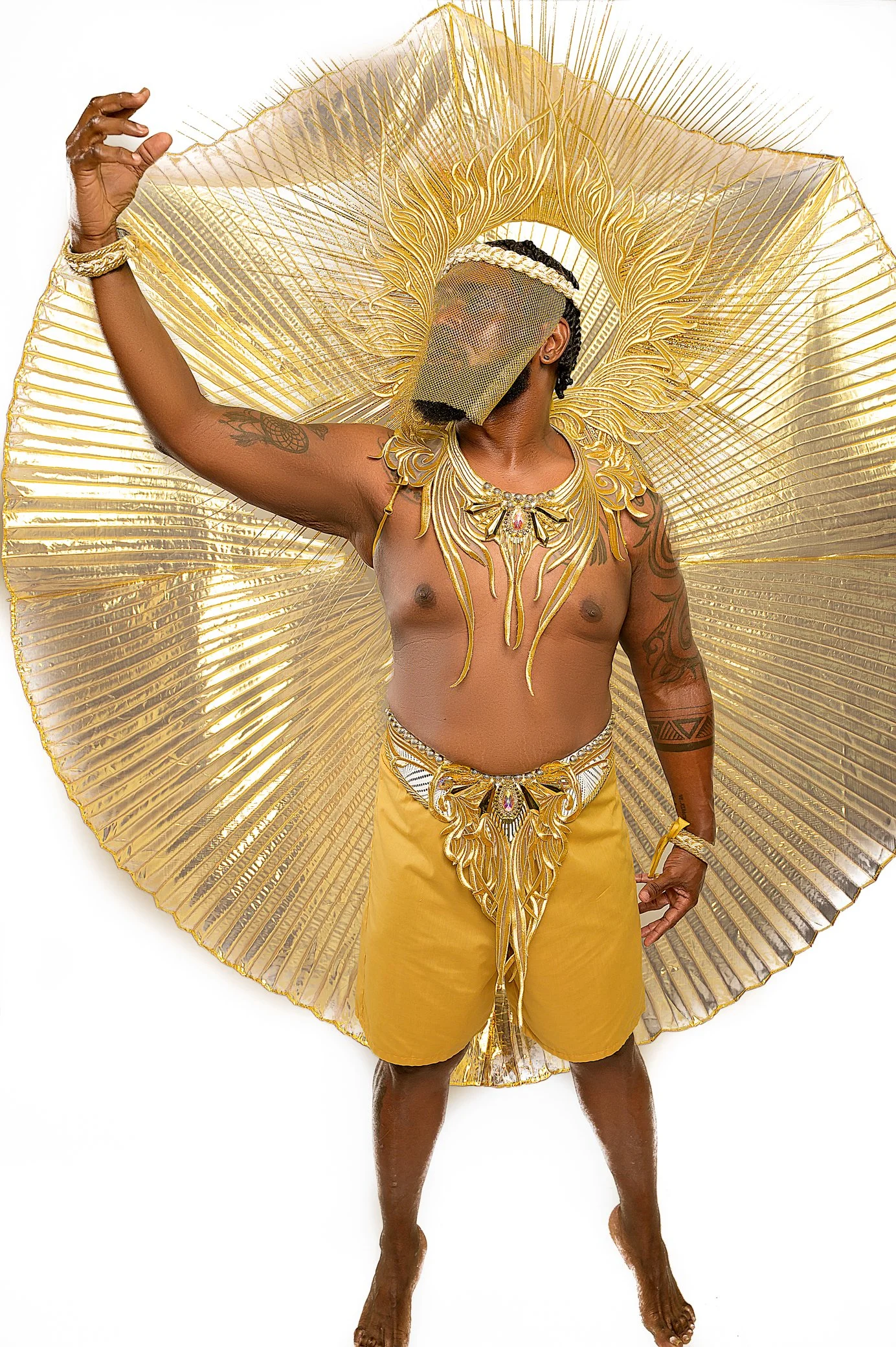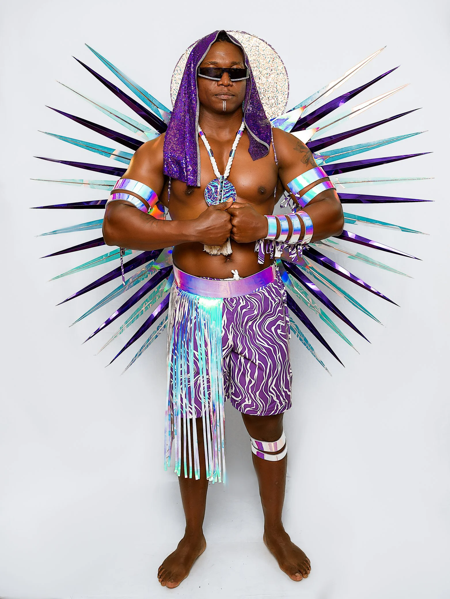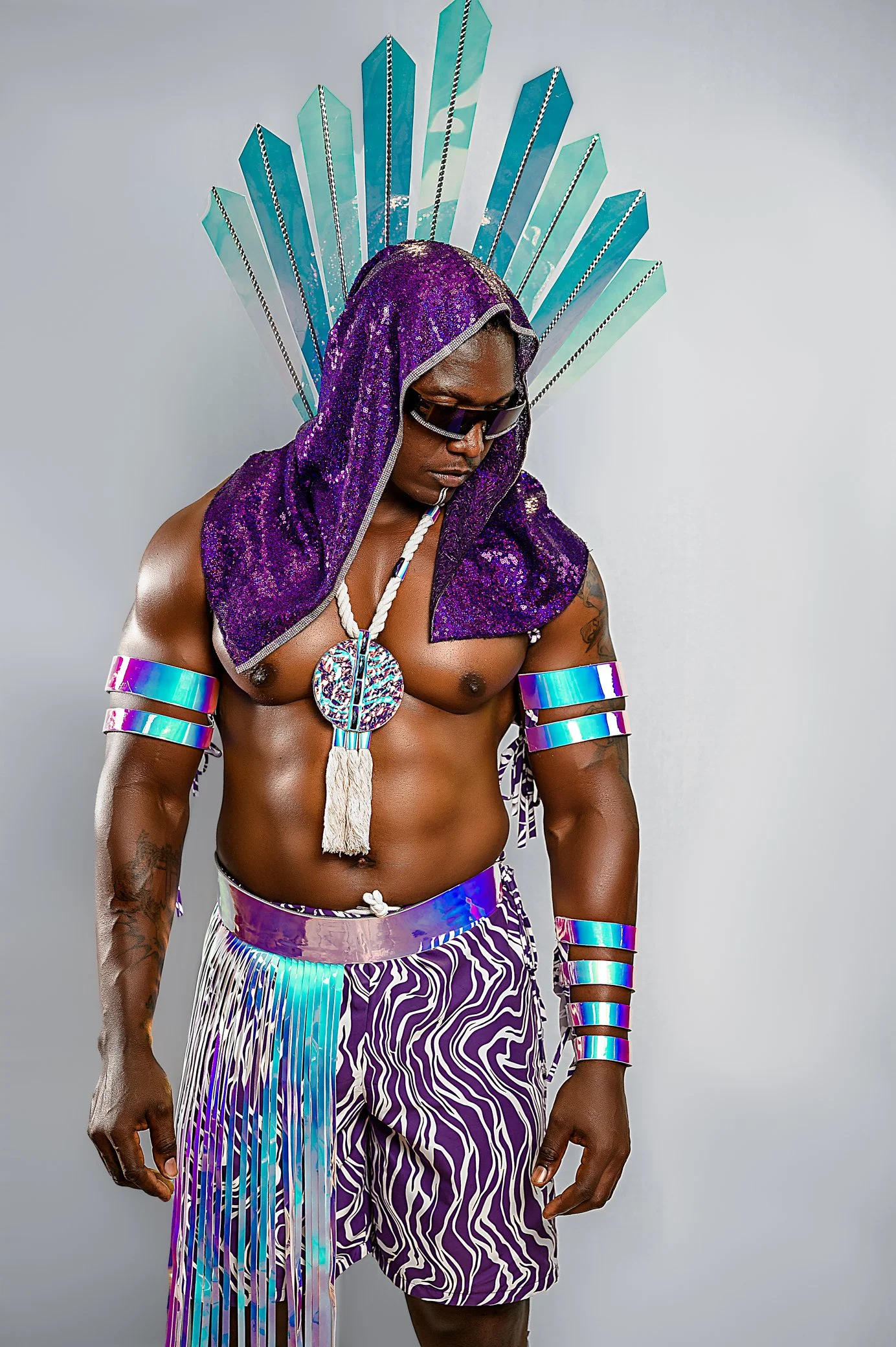 Yinka Rae, a section enveloped in the luminous beauty of iridescent hues, pays homage to its namesake meaning ‘surrounded by the light.’ The costumes shimmer with an array of vibrant colours that shift and change with every movement, symbolising the dynamic and ever-evolving journey of enlightenment. The iridescence captures the essence of inspiration and vision, reflecting the guiding light which Yinka Rae represents. This section embodies the radiant energy that lights the way, celebrating the spirit of those who have illuminated the path for generations.
